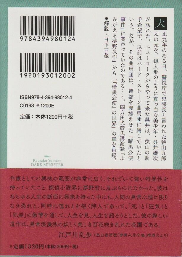 暗黒公使 ダーク・ミニスター(春陽文庫)/夢野久作