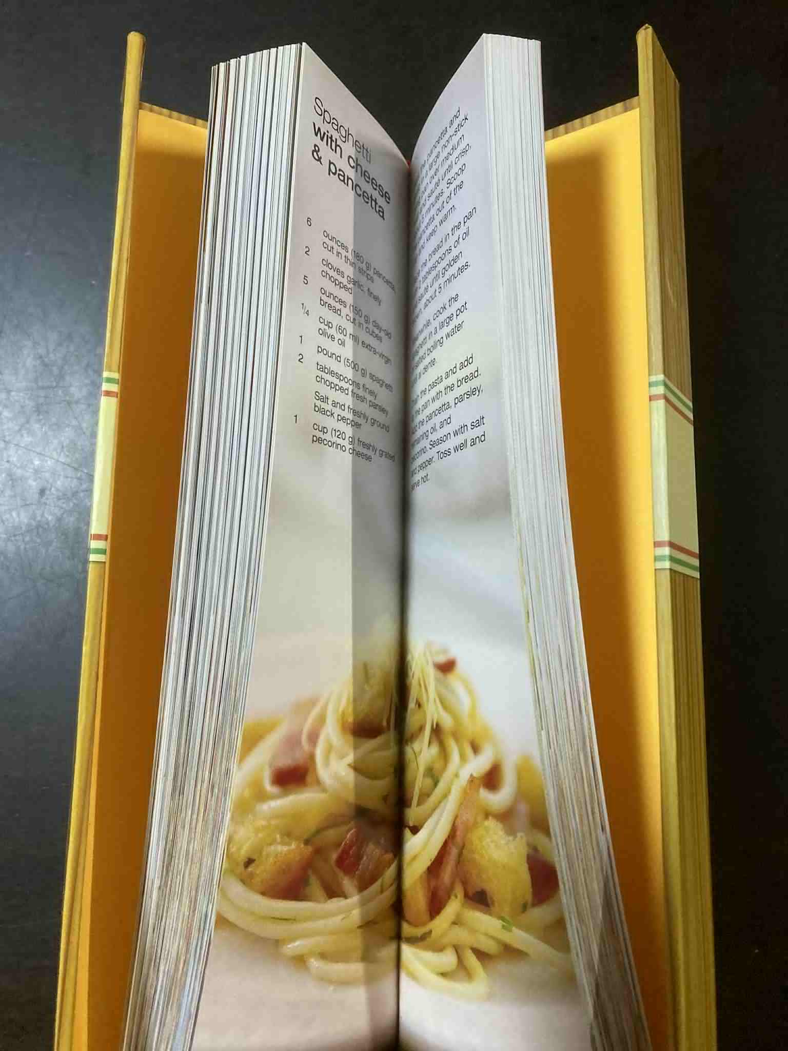 表紙がパスタ束を模したデザインになっており、中はレシピ本になっています。