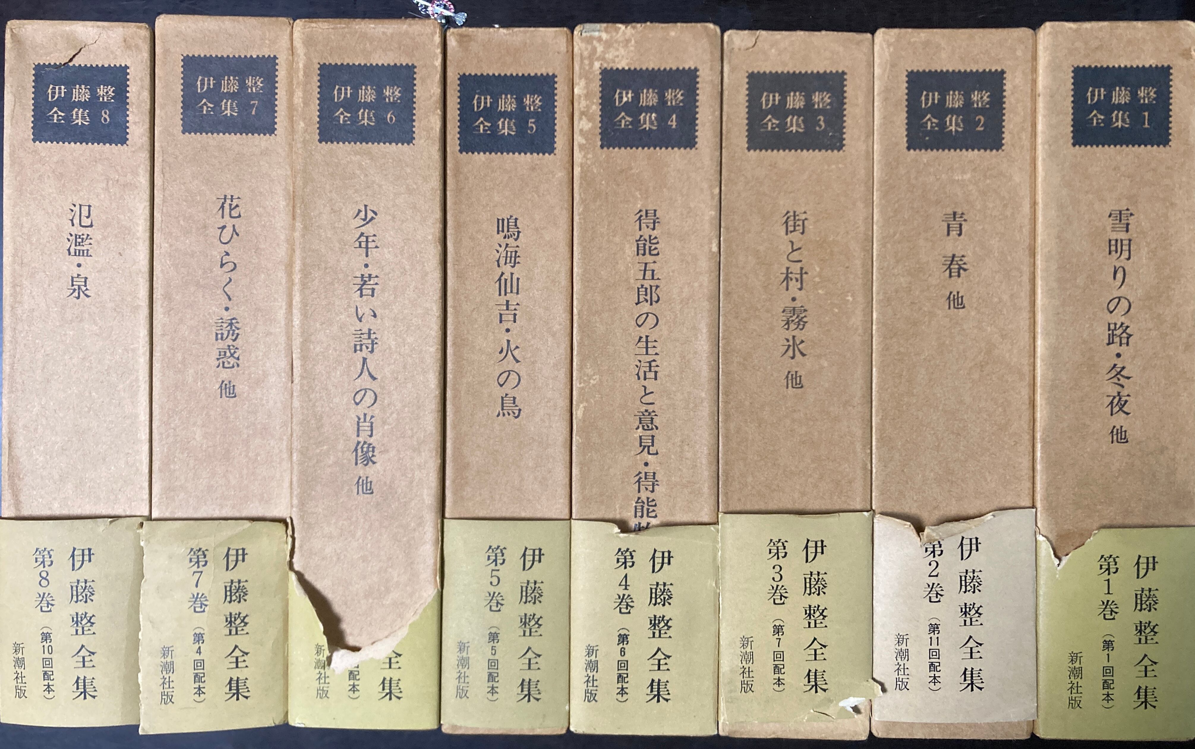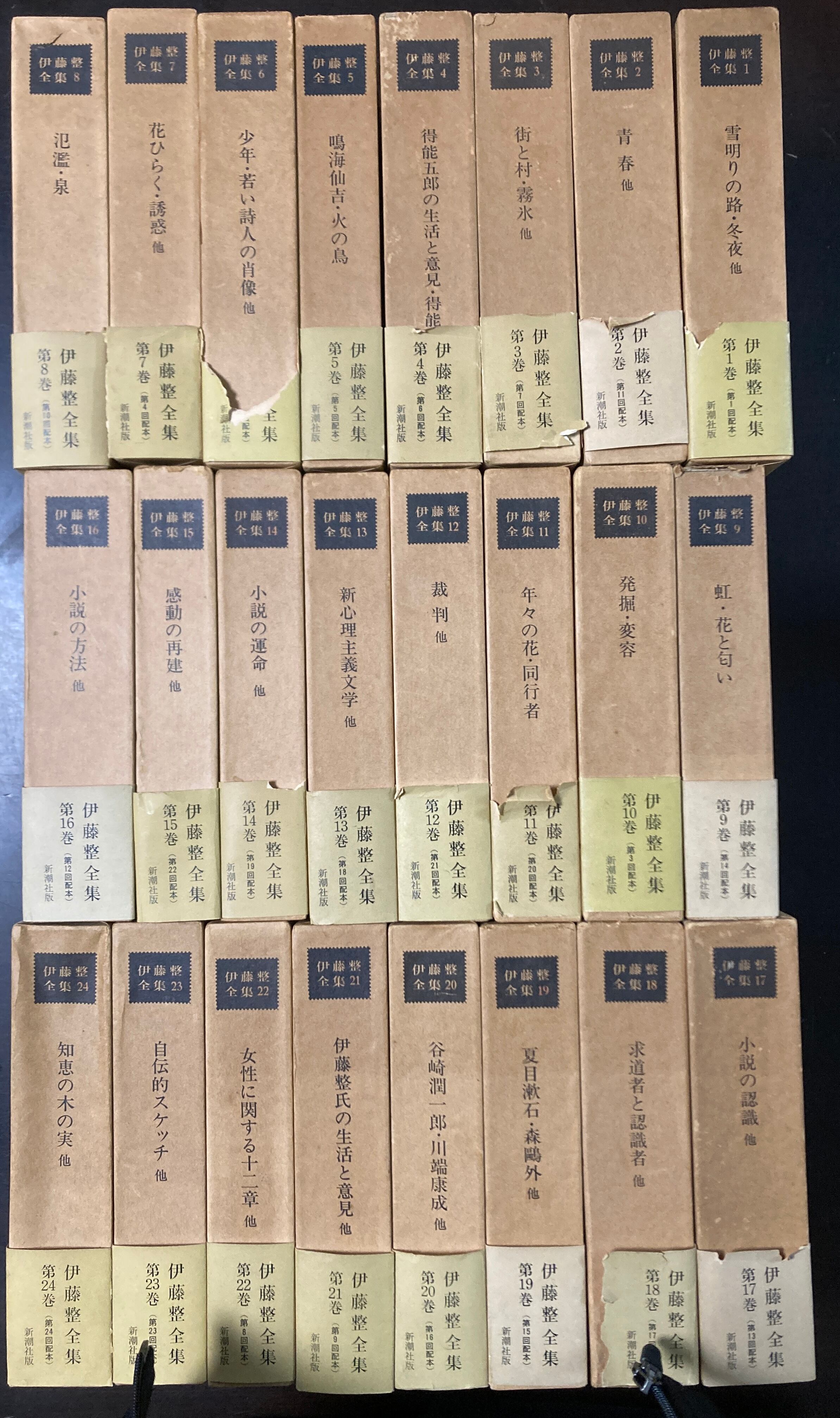 状 態:※『伊藤整全集』全24巻揃いの出品です。月報揃い。全巻:函の背表紙に強いヤケあり。ヘコミやキズなどの傷みのある函あり。帯も全巻についていますが一部に欠損・裂けキズなど傷みあり。本体はまずまず良好です。
